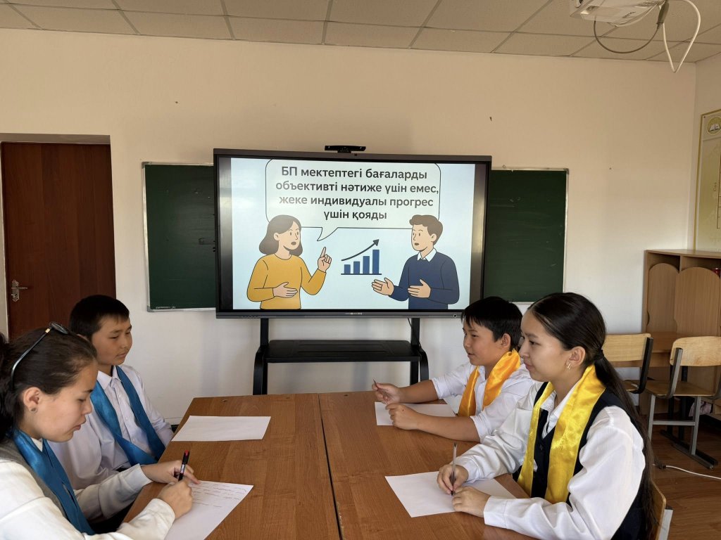 Көркем ауылының негізгі орта мектебінде “Болашақ” дебат клубы «БП мектептегі бағаларды объективті нәтиже үшін емес, жеке индивидуалды прогресс үшін кояды» тақырыбын талқылады.