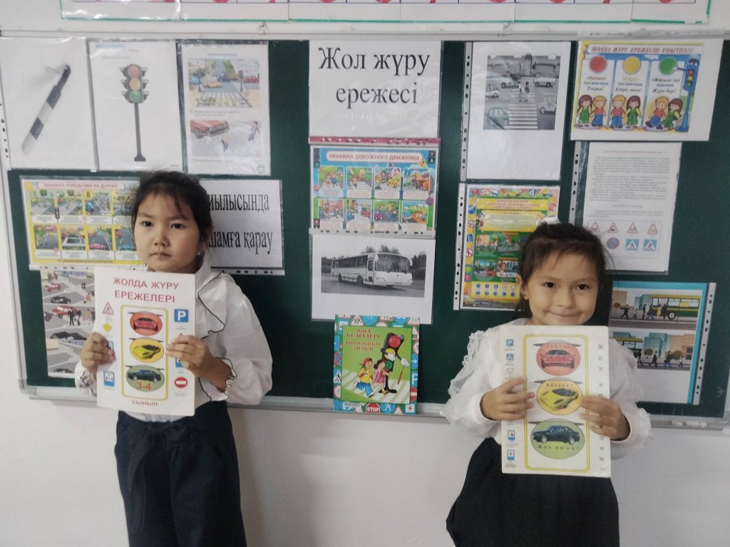 Көркем аулының негізгі орта мектебінде 1- сынып оқушыларына «Жол ережесін білейік»тақырыбында сынып сағаты және 10 минуттық қауіпсіздік сабақтары өткізілді.